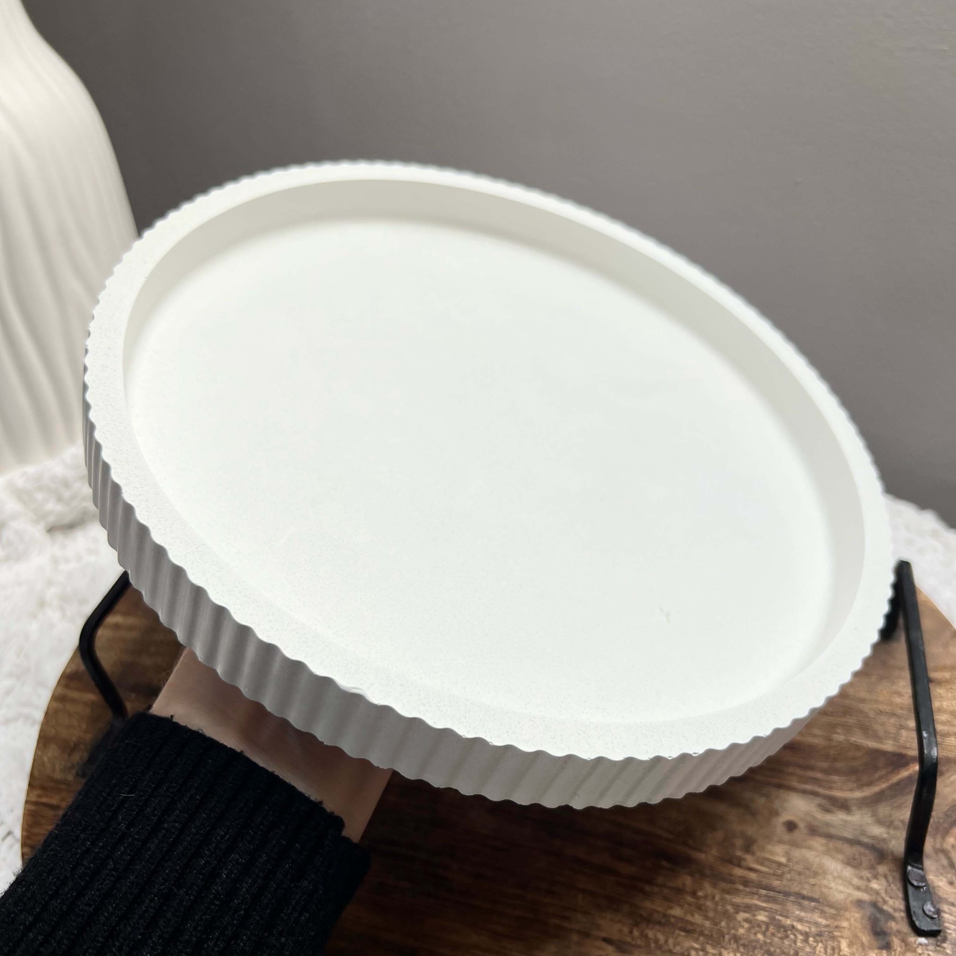 Elegantní dekorativní tác, který můžete využít na svíčky, šperky, drobnosti, nebo jako samostatný dekorativní prvek. který vnese do vašeho domova hravost, jednoduchost a špetku elegance. Díky svému čistému bílému odstínu skvěle ladí s přírodními i minimalistickými interiéry.