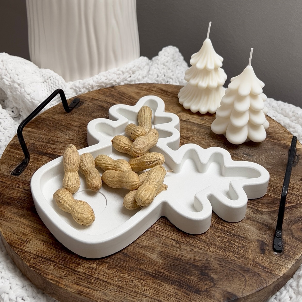 Elegantní vánoční, dekorativní tác, ve tvaru soba, který můžete využít na šperky, drobnosti, nebo jako samostatný dekorativní prvek, který vnese do vašeho domova hravost, jednoduchost a špetku elegance. Díky svému čistému bílému odstínu skvěle ladí s přírodními i minimalistickými interiéry. Dokonalý doplněk ke svíčkám.