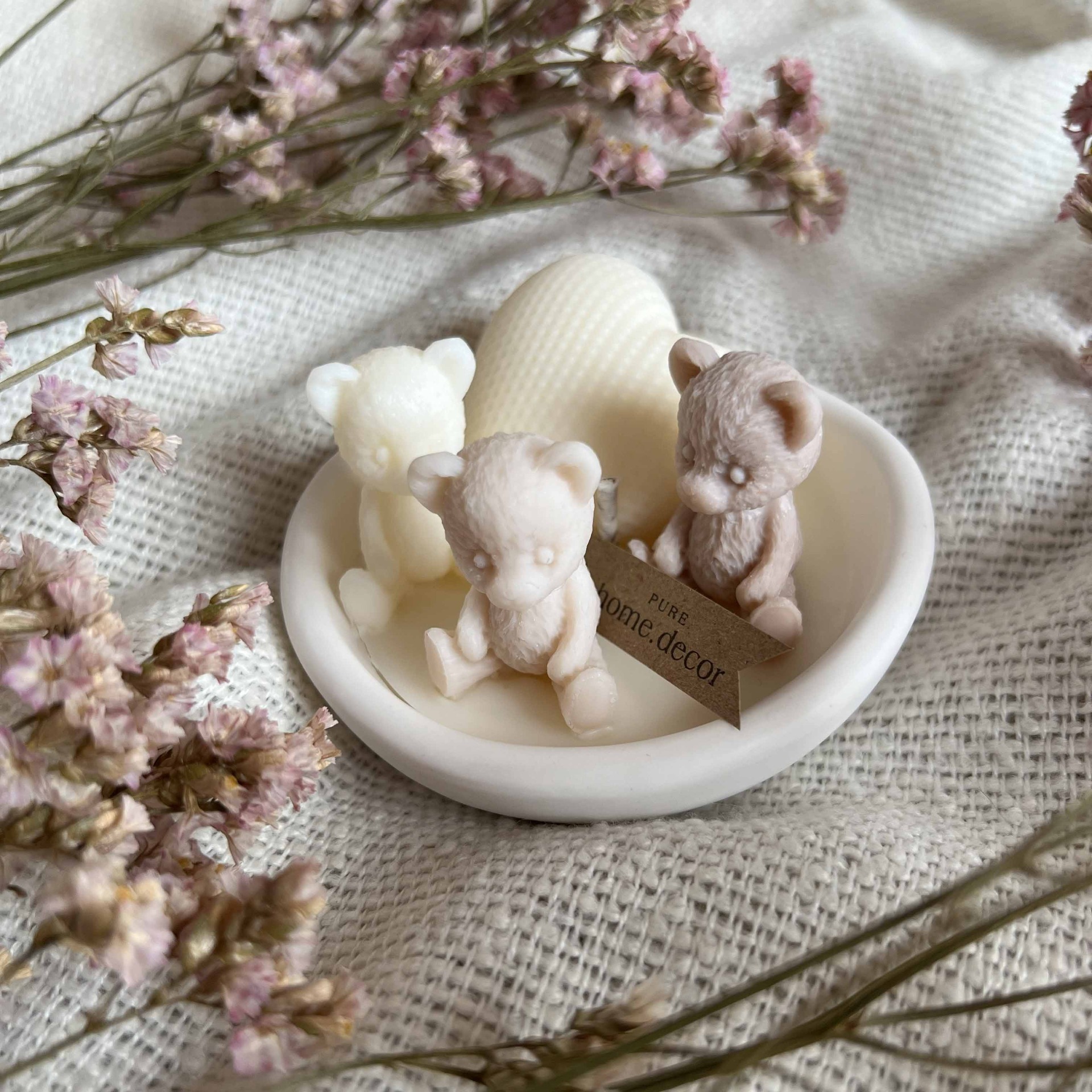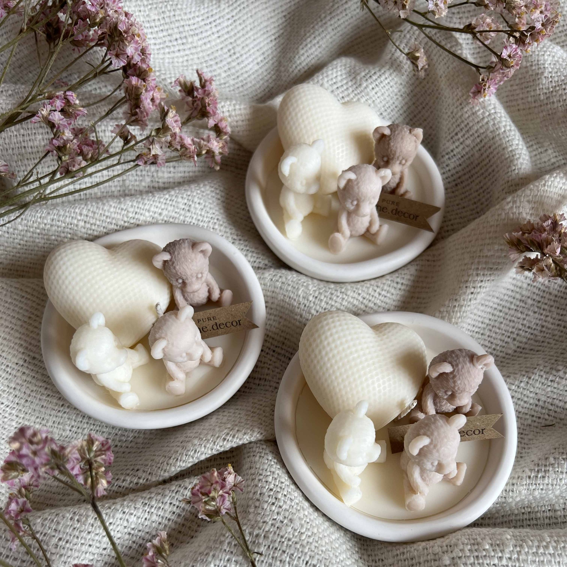 Jemná minimalistická svíčka v mističce z umělého kamene. Dokonale doplní vaše valentýnské dekorace, nebo potěší jako drobný dárek.