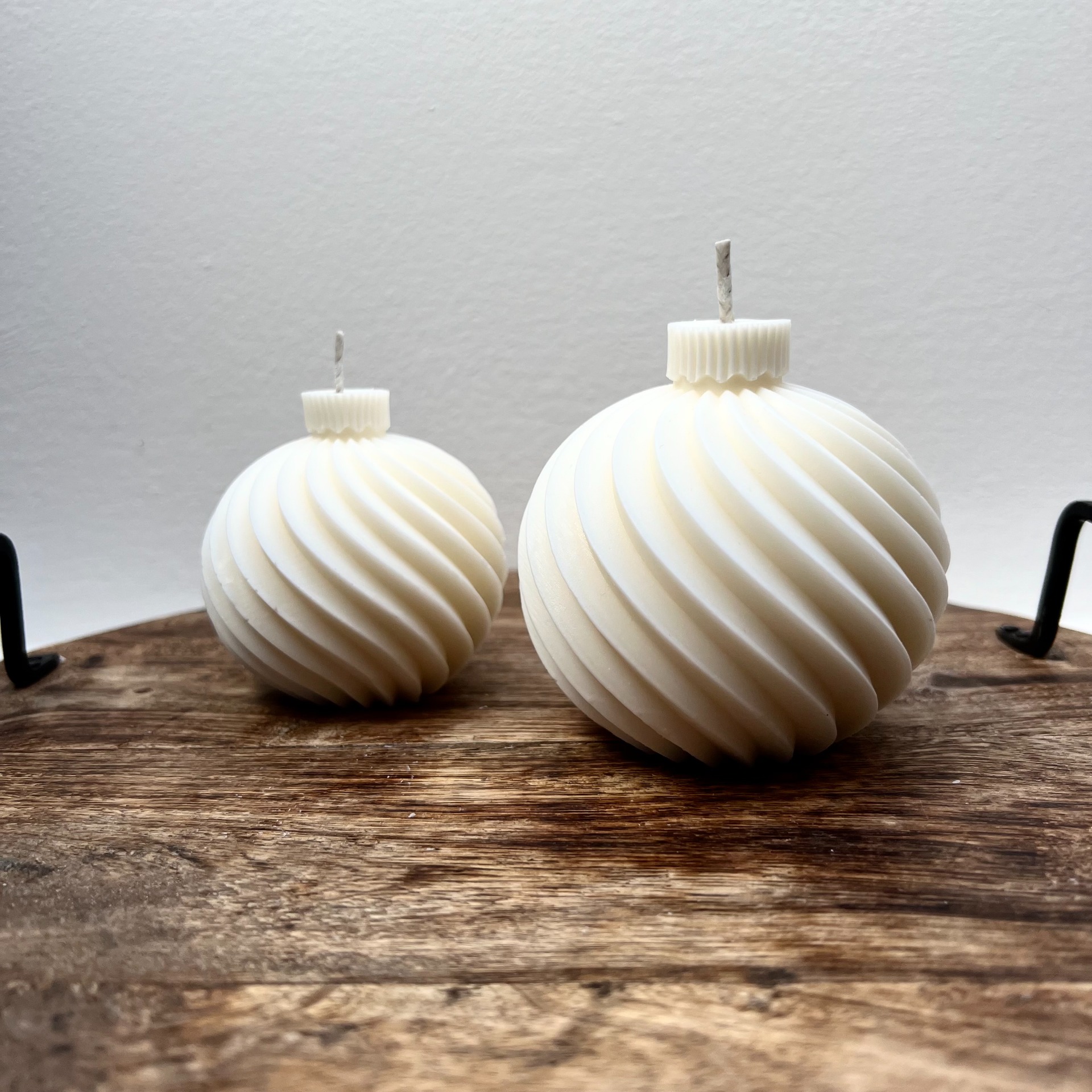 Jemná minimalistická sada plná zimní atmosféry. Obsahuje dvě svíčky ve tvaru vánočních koulí, ve dvou rozměrech. Dokonale doplní vaše vánoční dekorace, nebo potěší jako drobný dárek.