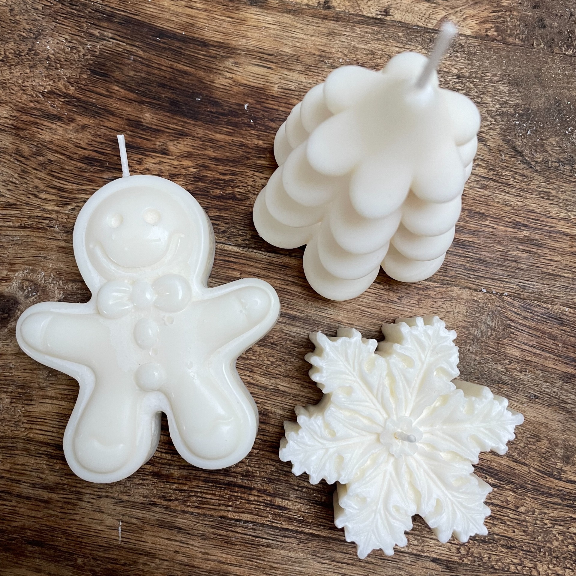 Velikost: stromeček 9 x 8 cm, perníček 9 x 6 cm, vločka průměr 6 cm