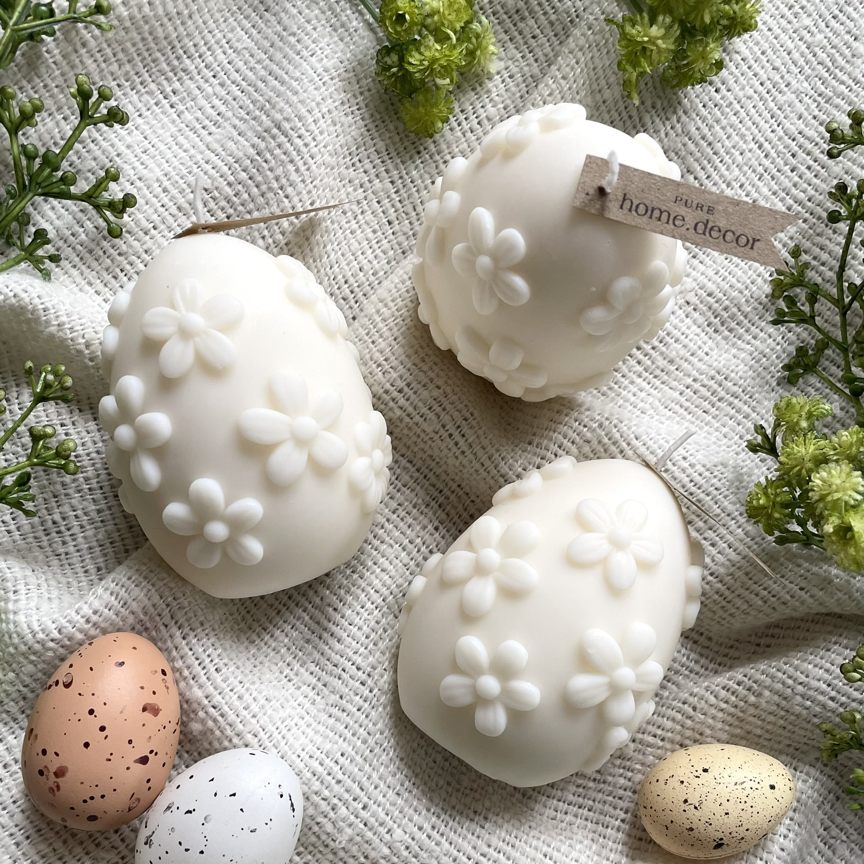 Jemná minimalistická svíčka ve tvaru velikonočního vajíčka. Dokonale doplní vaše jarní dekorace, nebo potěší jako drobný dárek.