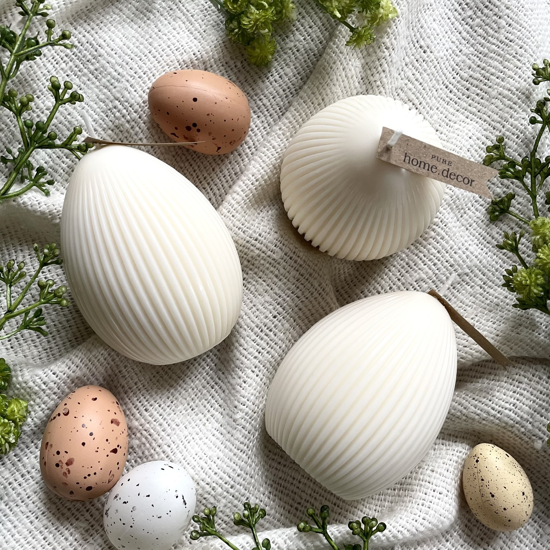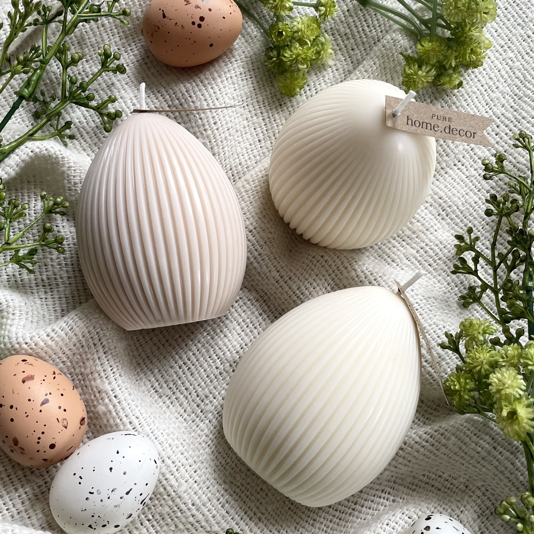 Jemná minimalistická svíčka ve tvaru velikonočního vajíčka. Dokonale doplní vaše jarní dekorace, nebo potěší jako drobný dárek.